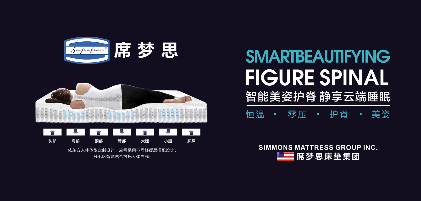 American Simmons席夢(mèng)思床墊,1881年6月26日誕生于美國伊利諾伊州,是一個(gè)全球性專業(yè)的健康睡眠品牌。憑借近100多年的專業(yè)制床經(jīng)驗(yàn)與產(chǎn)品服務(wù),American Simmons席夢(mèng)思床墊贏得了全球眾多酒店(管理集團(tuán))的信任和青睞,并與之建立了長期戰(zhàn)略合作伙伴關(guān)系。這些酒店(管理集團(tuán))戰(zhàn)略合作伙伴包括:萬豪酒店及度假酒店、康萊德酒店、希爾頓逸林酒店、麗笙集團(tuán)、索菲特酒店、亞特蘭蒂斯酒店、JW萬豪酒店、皇冠假日酒店、溫德姆酒店等。
